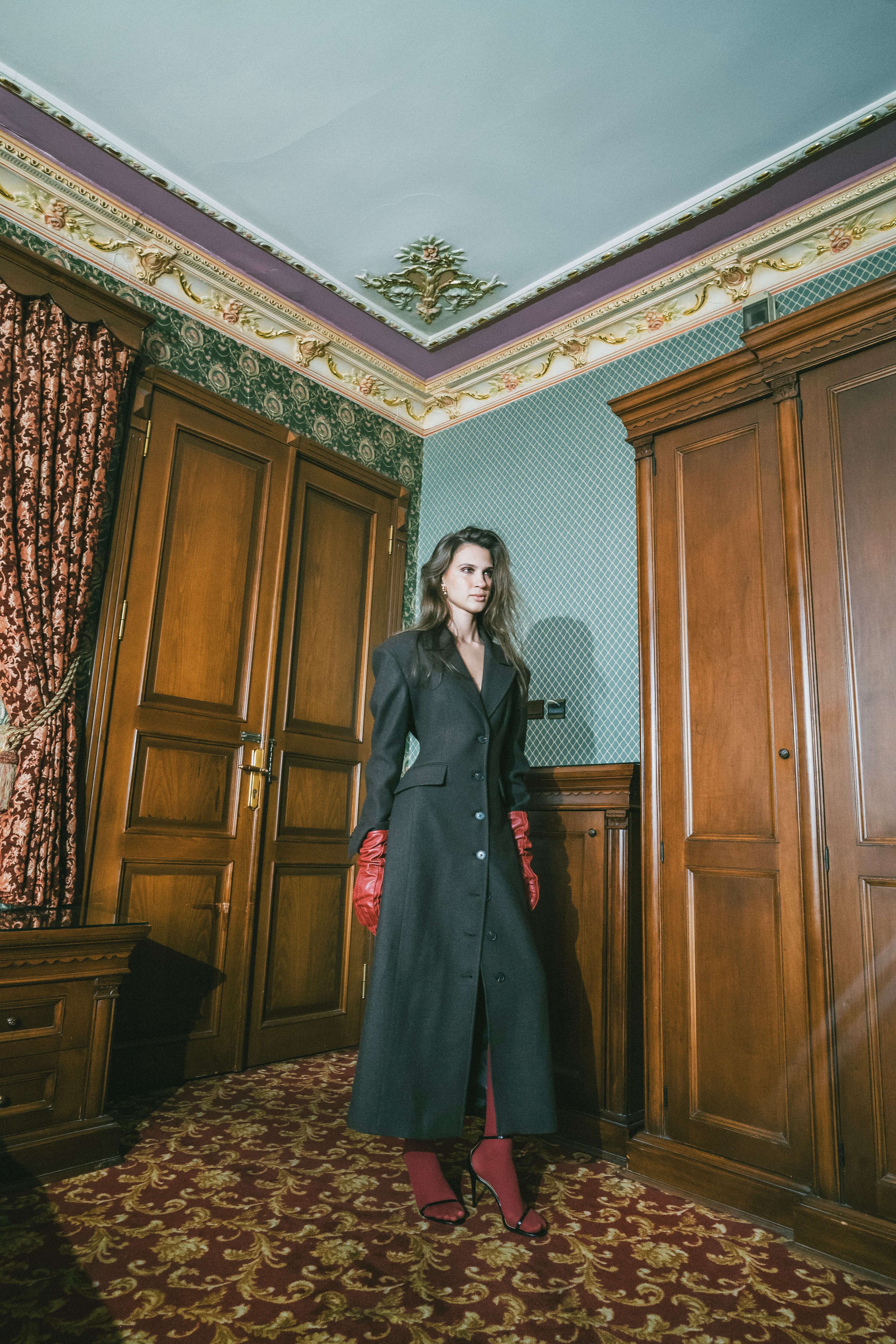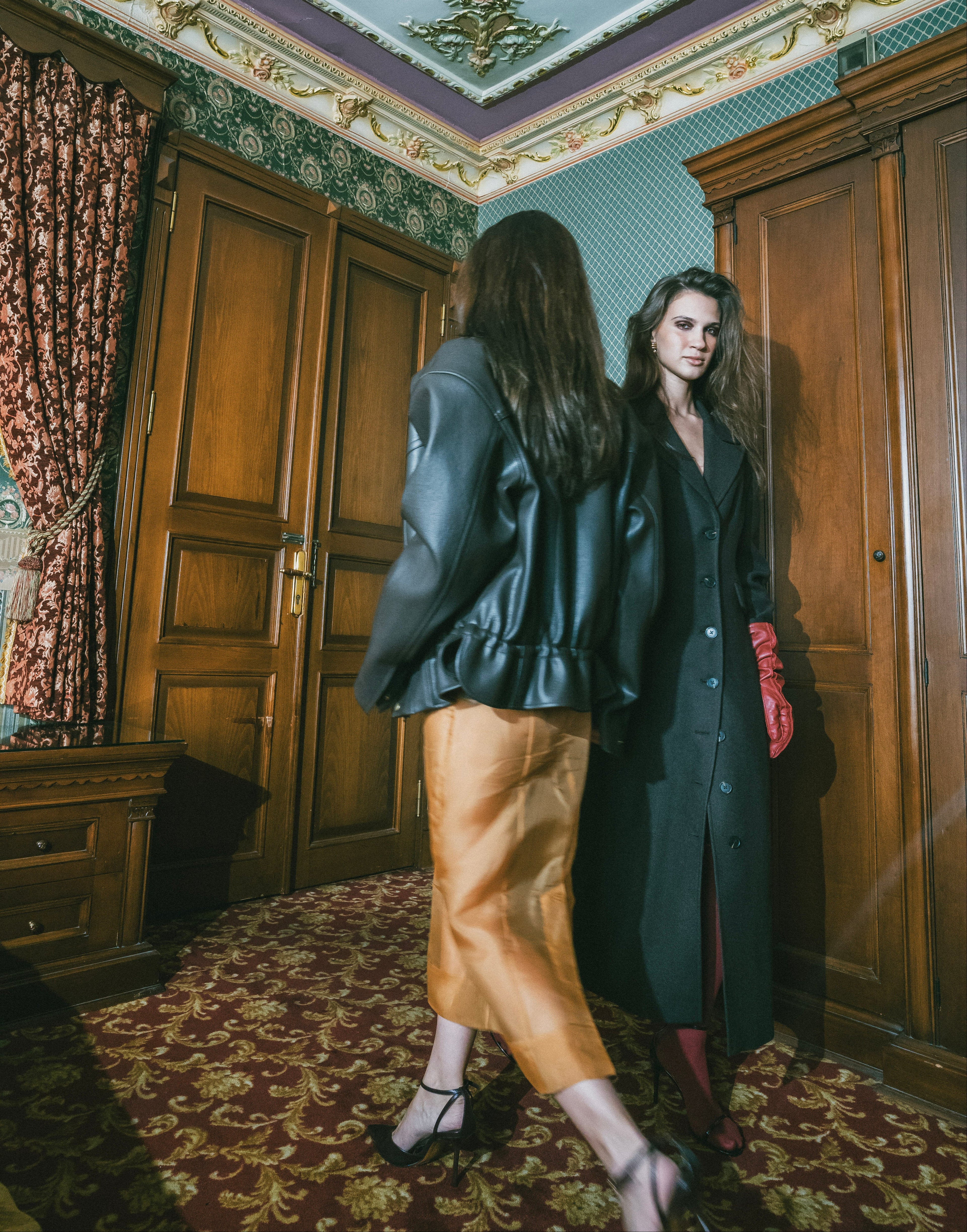 THE COLLECTION REVISITS THE YEARS WHEN WOMEN RESHAPED POWER WITH THEIR PRESENCE, NOT THROUGH ORNAMENT, BUT THROUGH FORM. IT DRAWS FROM THE SHARP SHOULDERS, SCULPTURAL TAILORING, AND QUIET CONFIDENCE THAT DEFINED THE EARLY 1980S — A DECADE WHERE CLOTHING BECAME A DECLARATION.
